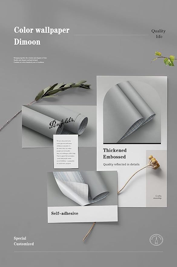 Dimoon 118''x17.7'' Grey Peel and Stick Wallpaper Contact Paper Modern Self Adhesive Wall Paper Removable Renter Friendly Textured Solid Color Shelf Cabinet Vinyl Roll (118''x17.7'',Grey)