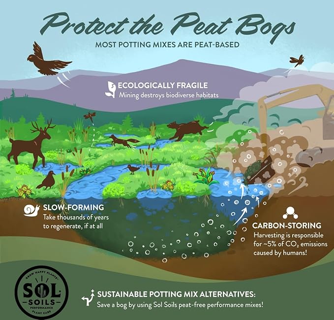 - PEAT MOSS FREE: Most potting mixes are peat based; the bogs are fragile ecosystems that are slow forming & peat is not a sustainable option for plants on any level which is why we use coco chips for plants and the planet to thrive in a functional way