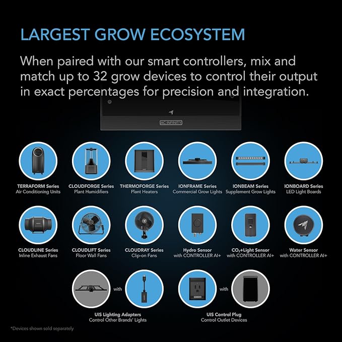 - AI-driven controller predicts climate shifts using real-time and historical data, auto-adjusting connected devices for optimal grow conditions.