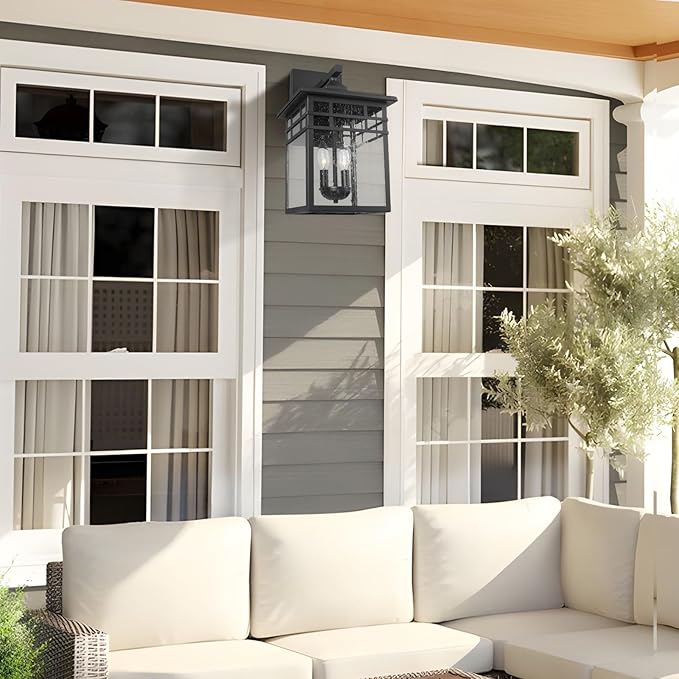 - 🏡DESIGNED TO LAST LIGHT FIXTURE: The large outdoor wall light, made from exclusive Long-lasting aluminum and iron in black finish, features the IP44 rating standard, withstands rain, storm and is safe to use outdoors, can last longer time than many other exterior lights, continues to create a beautiful atmosphere for your home, and keeps brightening your days, definitely a good investment for home decor