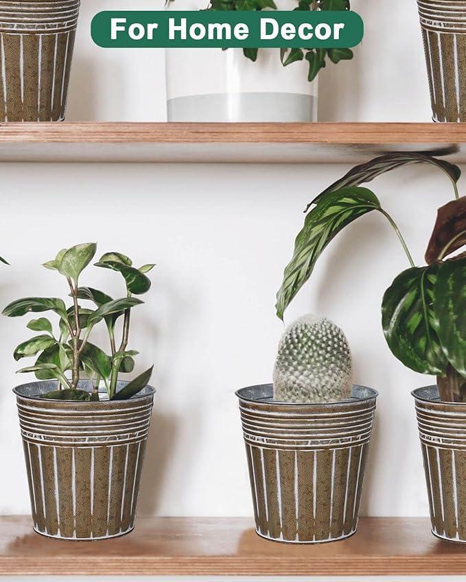 - 【Rust-proof Material】Small galvanized tin planter made of high-quality iron with perfect rustic look, scratch-proof galvanized surface. The metal material is waterproof and rust-proof, relatively light, durable, and sturdy.