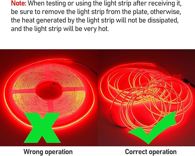 - 【COB LED STRIP】384LEDs/M(3.3ft), 3840LEDs/32.8ft(10M), COB light strips have more dense LED chips, Which make the emitting units nprecedentedly close to each other, and create super even lighting performance. At the same time, it brings higher luminous efficiency.
