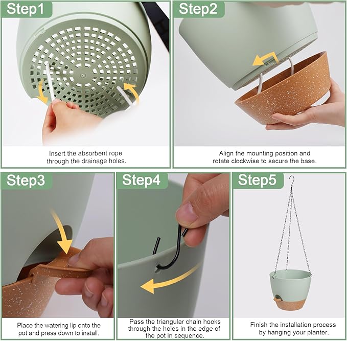 - Water Reservoir with Removable Tray - Water storage up to 7-14 days. Our hanging plant pots come equipped with a removable tray that doubles as a water reservoir, ensuring your plants are watered for up to two weeks while you are away.