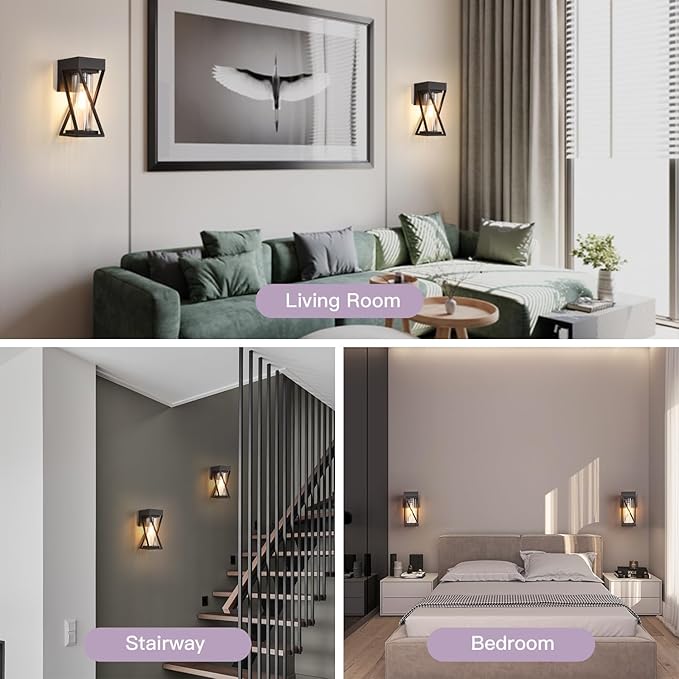 - [E26 Socket & Recommended Bulbs]: These modern exterior lighting fixtures are built in standard E26 sockets (60W Max), which are compatible with various bulbs, such as LED, Incandescent, or CFL bulbs. You also can use dimmable bulbs and compatible dimmers for these outdoor porch lights wall mount to meet your specific needs. (Note: Bulbs and dimmer are NOT included)