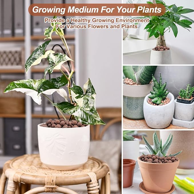 - Premium Grow Media: Clay aggregate which porous structure can absorb water and retain nutrients, and its good aeration provides the right amount of oxygen for your plants. Additionally, our light expanded clay can improve the potting environment and soil fertility, which increase the survival rate of plants and make them grow healthily