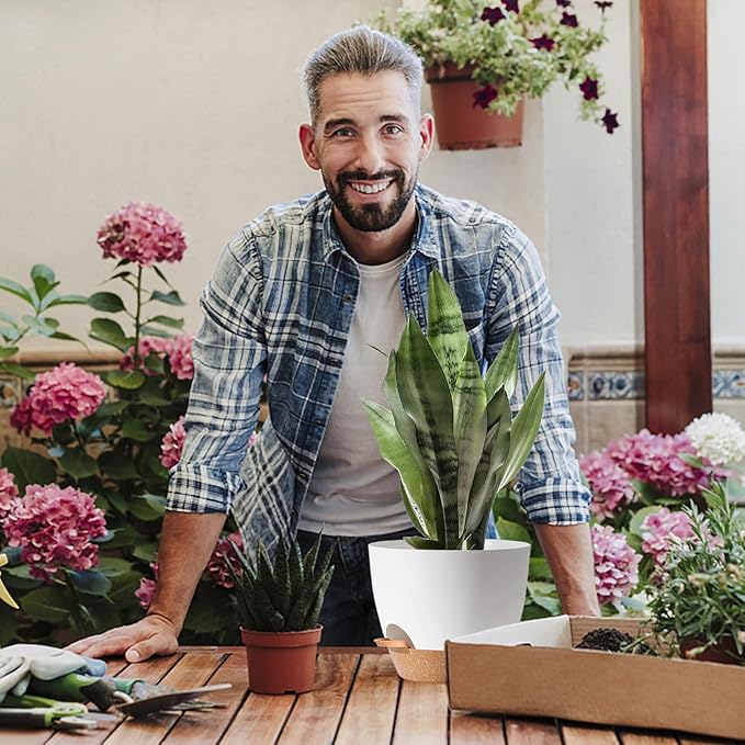 White Self Watering Pots with Drainage Planting Pot for HousePlants Plastic Flower Pots Outdoor Plant Pots Gift Idea Decorative Flower Pots Draining Pots for Indoor Plants