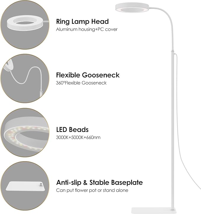 - 【Extended Power Cord & Stylish to Your Indoors】: This isn't just a plant light; it can also serve as a room decoration. With a 13-foot power cord, you can effortlessly use this plant growth light in your living room, bedroom, balcony, office, and other places without the worry of needing additional extension cords.