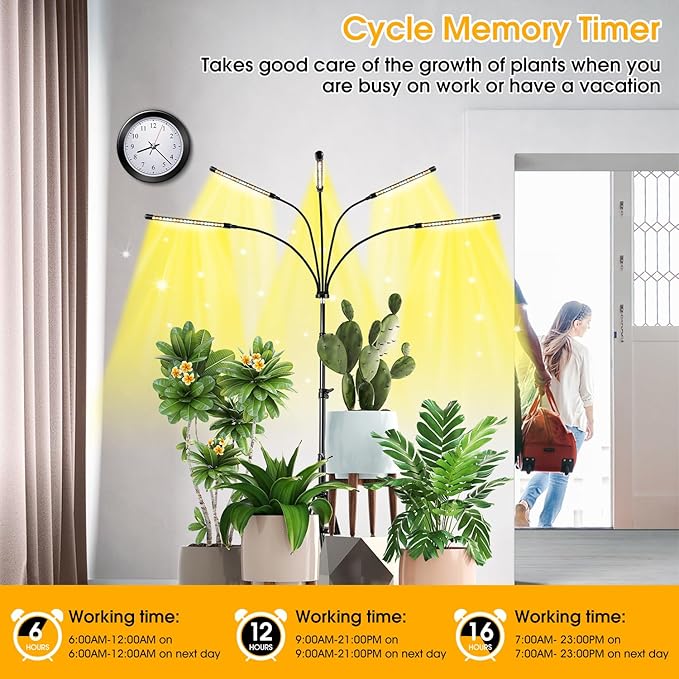 wolezek Grow Lights for Indoor Plants Full Spectrum, LED Grow Light with Adjustable Stand and Sturdy Clip, 5-Heads Plant Grow Lights Indoor with Auto 6/12/16H Timer, 3 Light Modes, 5 Levels Dimmable
