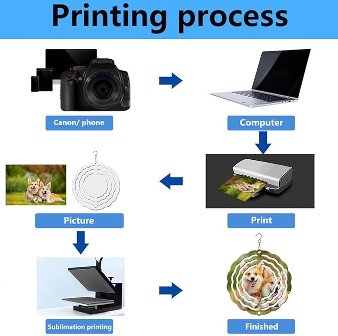 • 【Sublimation Blanks wind spinner】 sublimation blank wind spinner is a great piece of outdoor metal yard art or hanging décor which comes with a white base coat and a high gloss finish. Like all our products, this sublimation blank wind spinner is powder-coated for maximum rust resistance, making it ideal for use as an outdoor metal yard art.