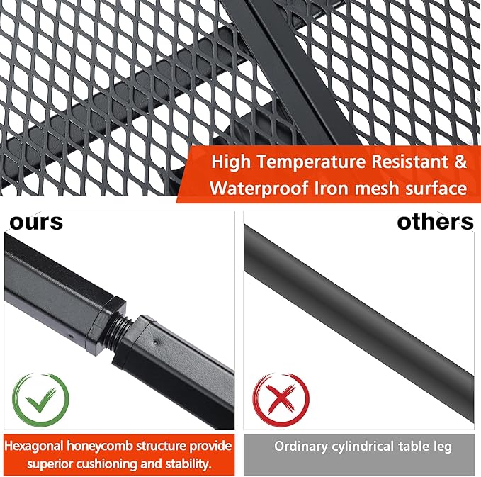- Waterproof and Anti-high Temperature: with a special coating mesh desktop, this grill table can effectively avoid water accumulation and rust. In addition, itโs made of high-temperature resistant material, you can set up a small barbecues to enjoy a beautiful time.