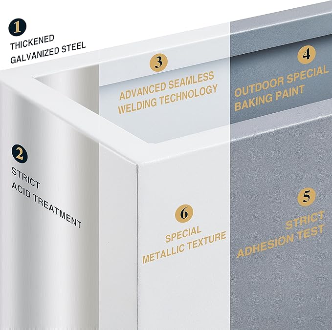 - 【Span Metal Planter】This tall planter box is made from a fully seam welded thick galvanized steel, and adopts outdoor special baking paint, giving the surface a premium metallic color and special texture through the advanced powder injection process.