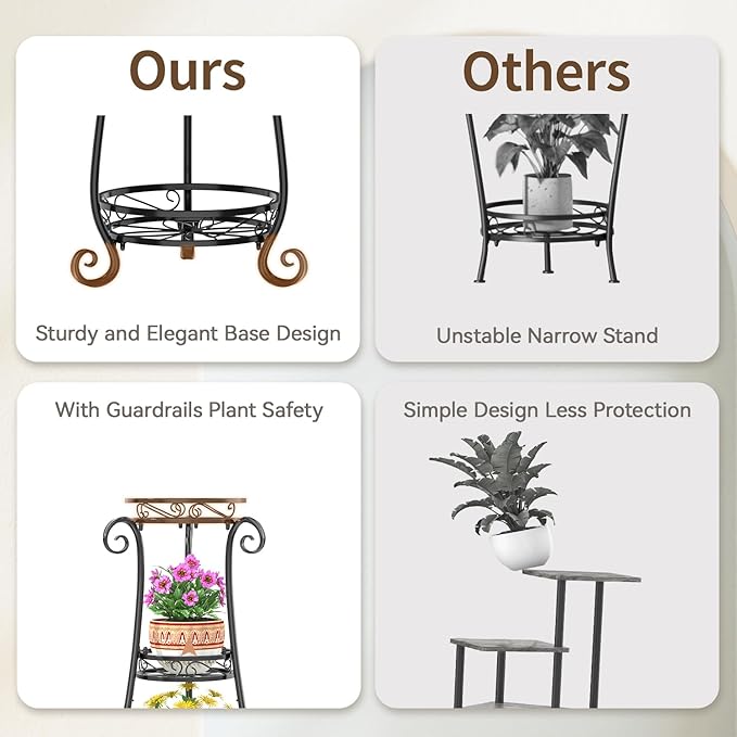 - 【Stays Steady Anywhere】 Worry-free stability for your plants and family! This sturdy iron frame and reinforced triangular design prevent tipping—even with heavy pots. It’s safe for your curious pets or little ones and ensures your plants stay secure, no matter what.