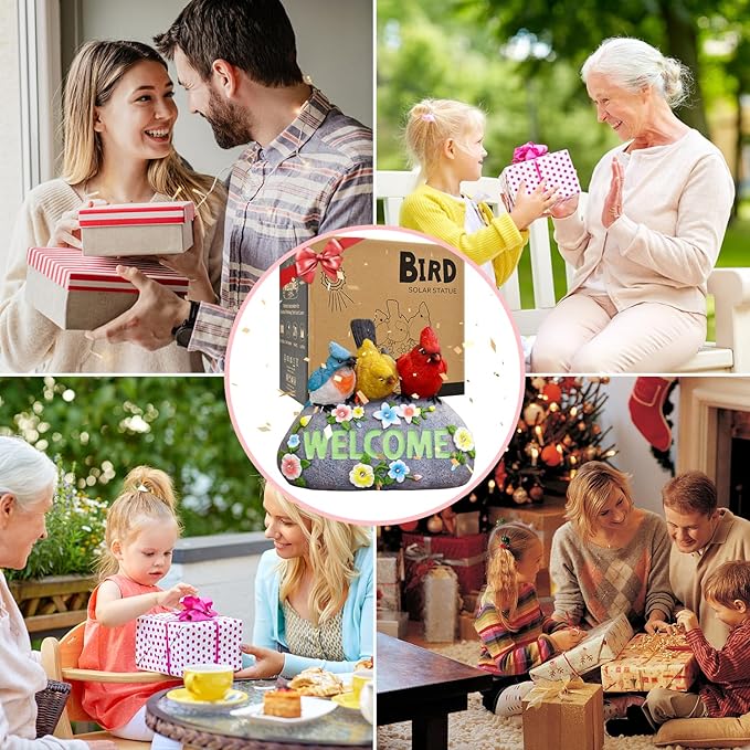 - 【Perfect Gifts for Women, Moms & Garden Enthusiasts】: Surprise your loved ones who enjoy gardening or appreciate unique decor with this exquisite bird family solar statue, making it an ideal gift for birthdays, Mother's Day, or housewarmings