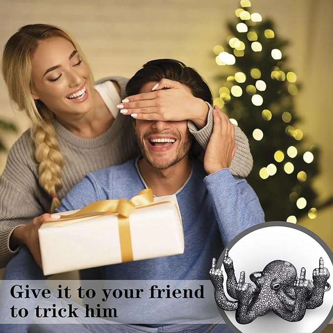Octopus Statue,Middle Finger Desk Decor,Home Office Decor,Cute Room Decor,Funny Gifts,Various Fish Tank Decoration (Black)