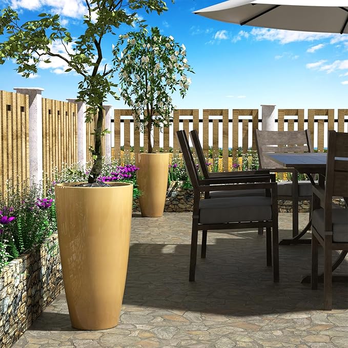 - DURABLE MATERIAL: Tall planter is made of plastic and stone composite, with beautiful texture and not heavy body. Thickened inner-wall makes it crack resistant, scratch resistant, UV resistant, colorfast all day long.