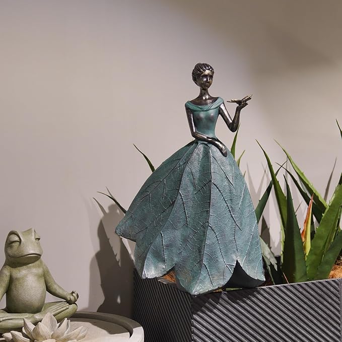 • Fairy Statue: Do you think your garden is too drab? Our leaf Angel girl statue with dragonfly product is originally designed by the designer. The skirt is in the shape of a leaf with the delicate texture of a leaf, which looks very artistic. It can add a different aesthetic feeling to your room or garden.