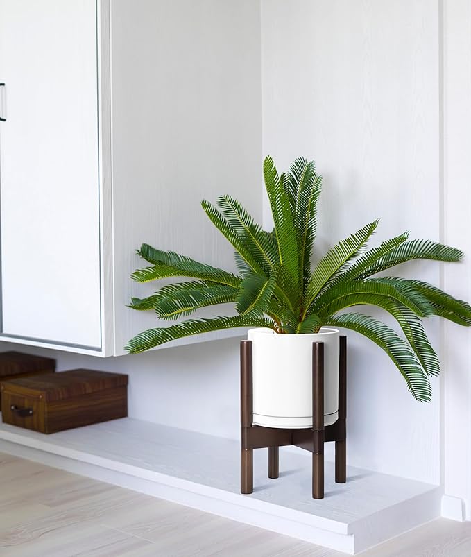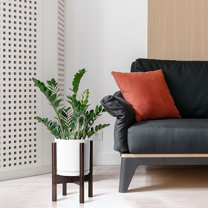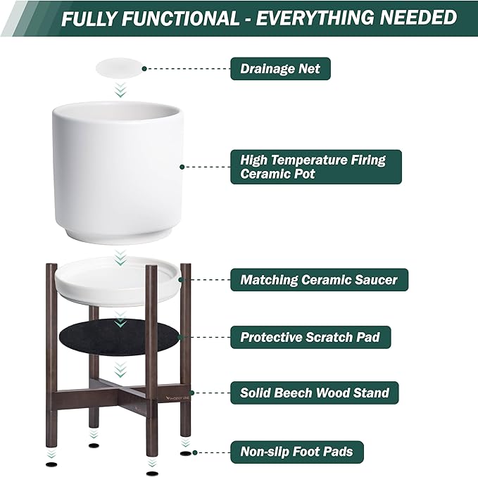 • A Complete Set: Mid-century ceramic planter, combined with a sculptural, solid wood stand that match perfectly together and looks great in anywhere.