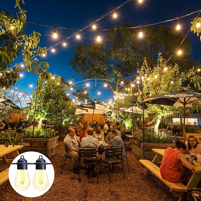 - 【Indoor - Outdoor & Ambiance - Making】These commercial-grade S14 Edison-style outdoor string lights feature exquisite craftsmanship, perfect for both indoor and outdoor Decor. When installed as solar canopy lights over your porch or gazebo,they create a charming vintage Italian bistro ambiance—instantly transforming your space into an elegant, romantic, joyful, warm, and dreamy party atmosphere that helps you unwind.Our premium outdoor string lights also make ideal gifts for students,mothers, fathers,partners,spouses,children,or parents—perfect for Back-to-school season,College graduations,Halloween & Christmas,Birthdays & winter holidays,Mother's Day & Father's Day,Weddings & anniversaries.