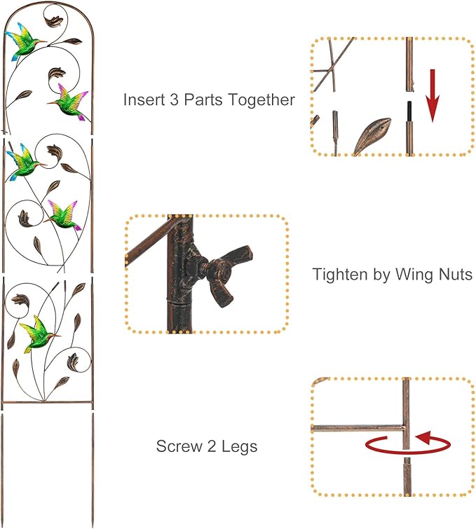 LEWIS&WAYNE 2 Pack Metal Garden Trellis with Colorful Hummingbird 60 Inch High Outdoor Decoration Arched Fence Trellis for Climbing Plants for Patio, Lawn, Yard, Backyard, Wall Brackets