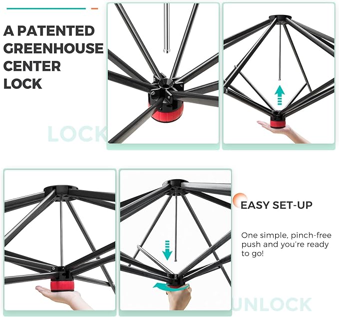 - ONE PERSON SETUP: Innovative PeakPush one person setup technology allows you to set up this greenhouse in seconds. It glides closed just as easily as it goes up.