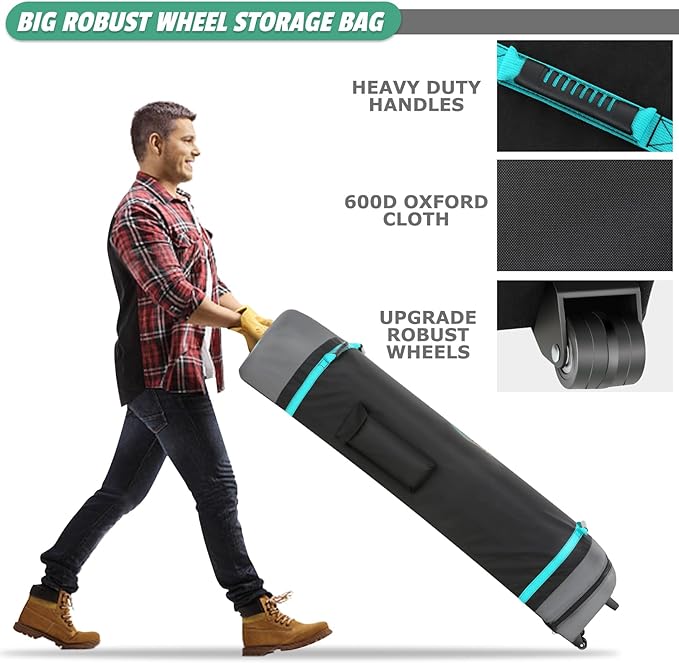 - [Portable Wheeled Bag, Versatile Applications]We provide a solid and tear-resistant 600D Oxford fabric wheeled bag capable of carrying the 10x20 heavy duty Canopy, weighing up to 100 pounds. It features three large standing wheels and reinforced handles for easy mobility and transportation. The canopy is perfect for parties, weddings, barbecues, trade shows, sports events, disaster relief, or any outdoor activities.