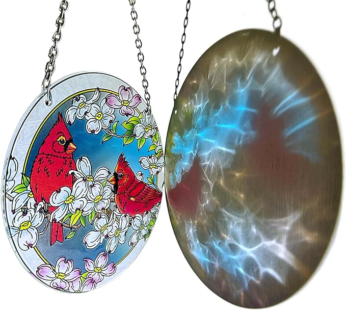 - 【Perfect Gifts】 The Cardinal suncatchers is a lovely gift for your friends, family, lover, etc. Wherever the place is - sliding glass doors, kitchen window, upstairs windows, circle-head window, front window, bedroom window, kitchen door. It is great decoration for home, office, shop, restaurant, window display, coffee shop or wedding party decoration. There is no doubt that cardinal suncatcher is a unique memorial gift.
