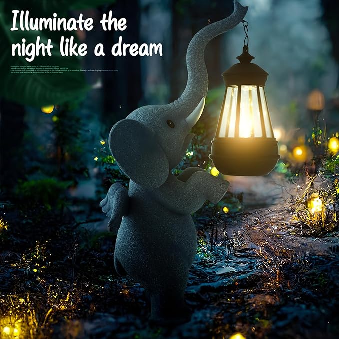 - 【Good Luck Angel Elephant Outdoor Decor】Put the solar angel Elephant garden statues on your garden or yard,it symbolizes good luck.The Outdoor statues has realistic shapes, fine workmanship and natural colors and textures, which make the 3-dimensional works come alive,add vitality to the silent lawn and garden.