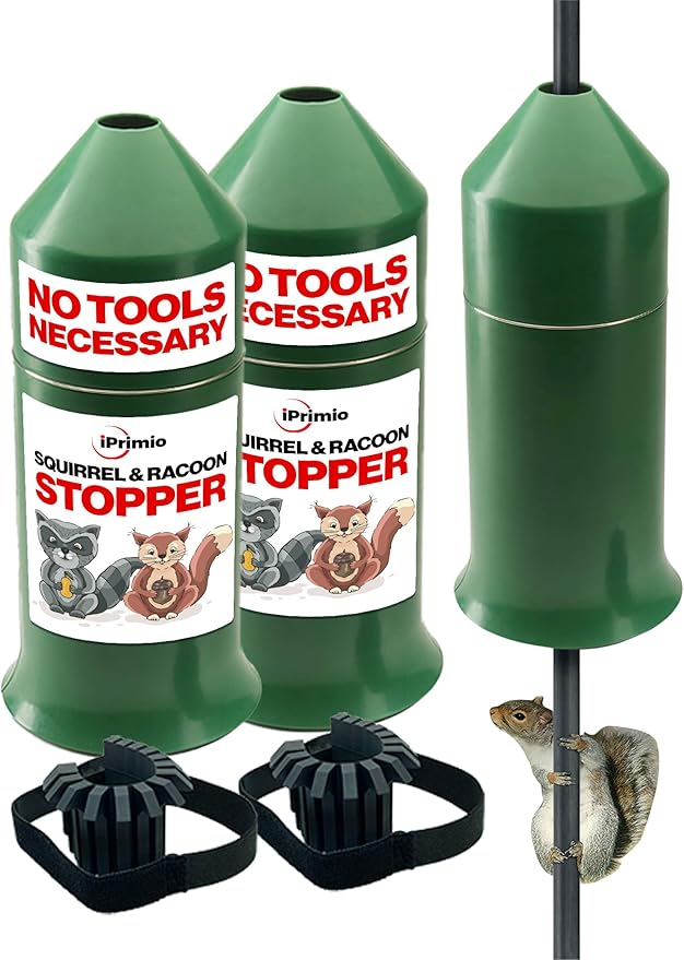 - WEATHER-RESISTANT MATERIAL -The iPrimio 18" squirrel baffles are made with weather resistance in mind to ensure they will maintain their shape and form against extreme weather conditions.