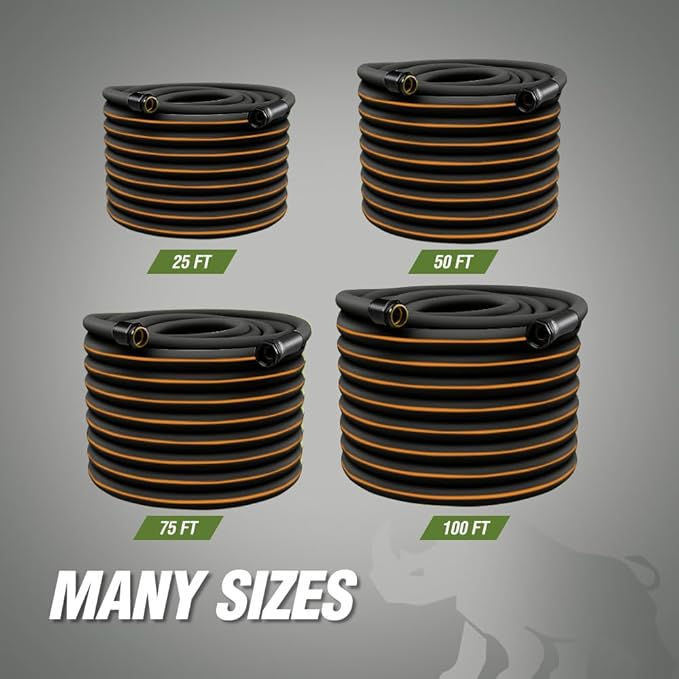 Rugged Rhino Heavy Duty Flexible Light Weight Garden Hose, 50ft x 5/8in, 4 Layer Leakproof Outdoor Gardening Tools, Watering Supplies, Powerful Water Pressure for Lawn, Flowers, Black Orange