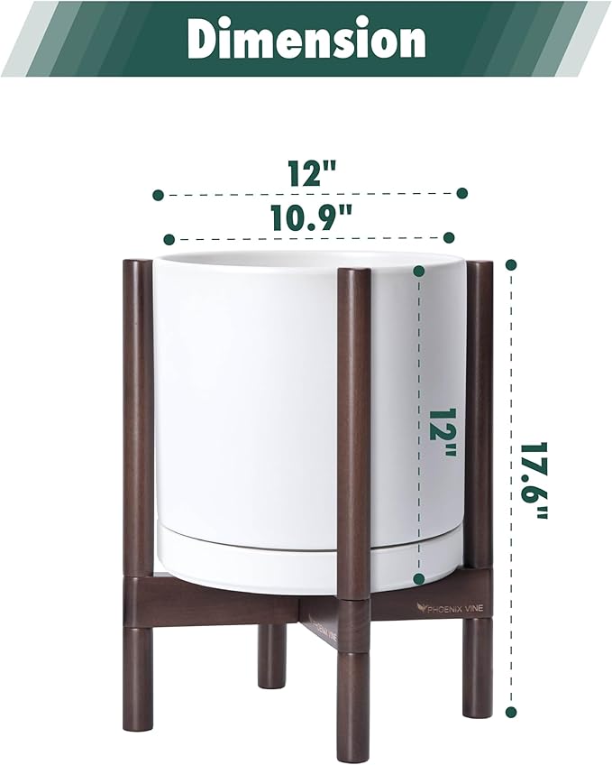 • 12 Inch Pot with Stand Set: Planter size: 11.8"Diameter x 11.8"H; pot with stand total height: 18.5 inch.