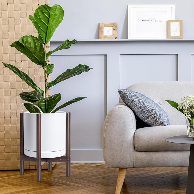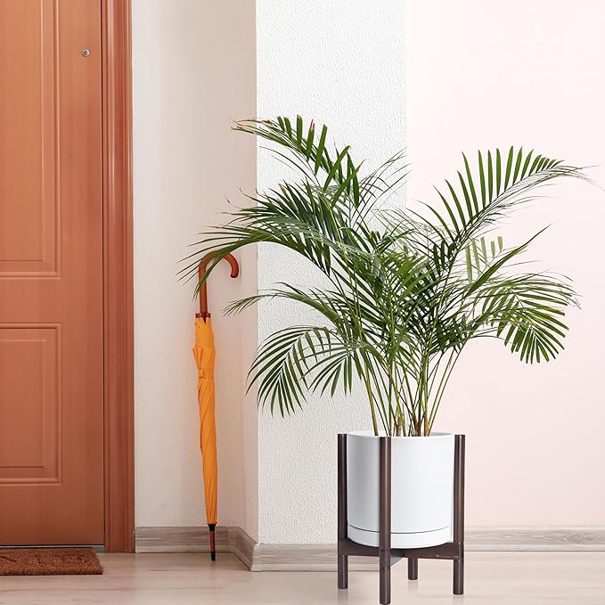 • A Complete Set: Mid-century ceramic planter, combined with a sculptural, solid wood stand that match perfectly together and looks great in anywhere.