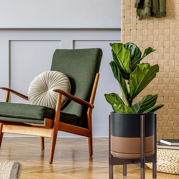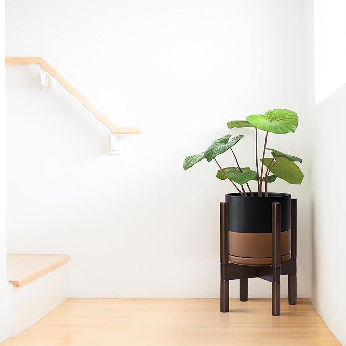 • A Complete Set: Mid-century ceramic planter, combined with a sculptural, solid wood stand that match perfectly together and looks great in anywhere.