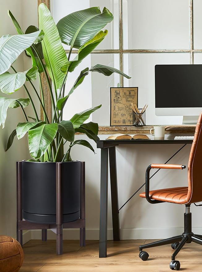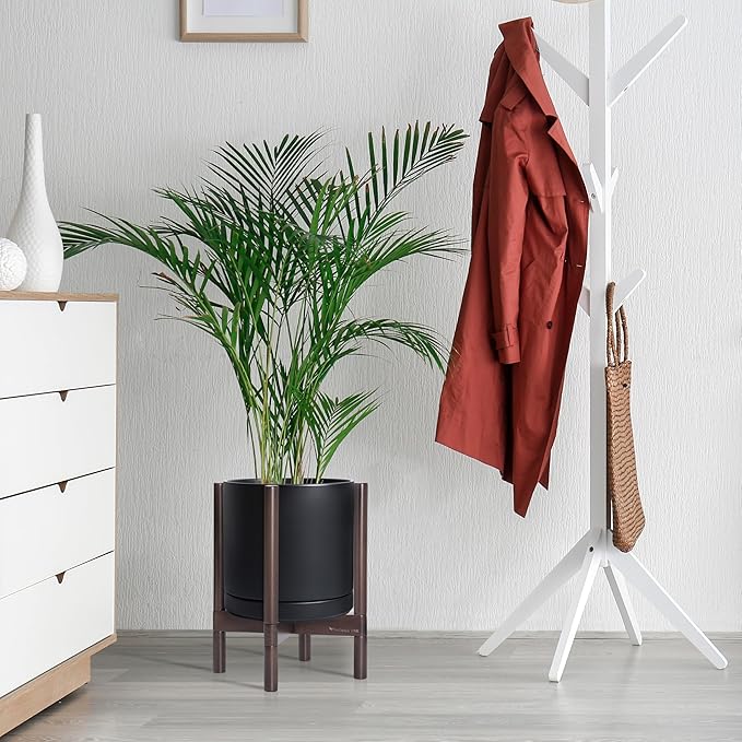 • A Complete Set: Mid-century ceramic planter, combined with a sculptural, solid wood stand that match perfectly together and looks great in anywhere.