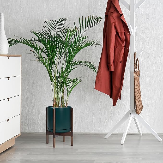 • A Complete Set: Mid-century ceramic planter, combined with a sculptural, solid wood stand that match perfectly together and looks great in anywhere.