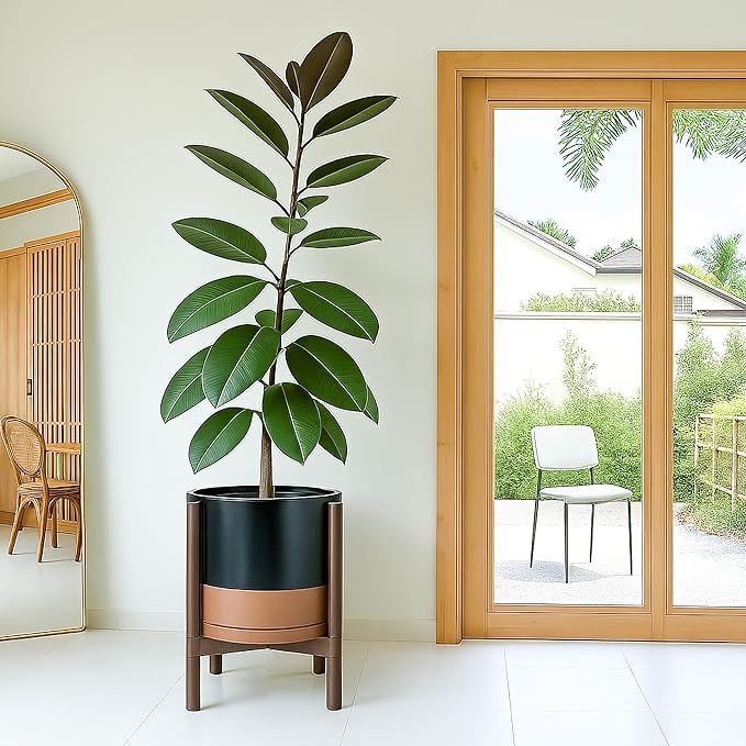 • A Complete Set: Mid-century ceramic planter, combined with a sculptural, solid wood stand that match perfectly together and looks great in anywhere.