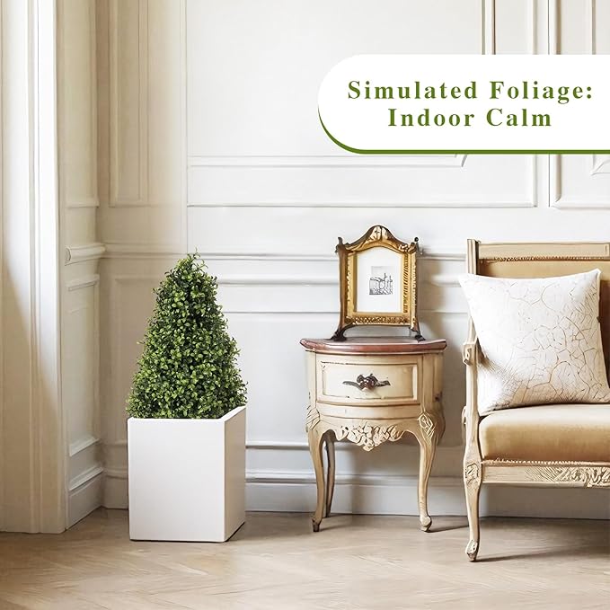 - Lifelike & Elegant Design - Crafted with dense, realistic foliage and a natural cone shape, these artificial boxwood plants bring a sophisticated, lifelike touch to your outdoor or indoor space. Each faux tree stands 2.5ft tall and is the perfect height to frame doorways or walkways