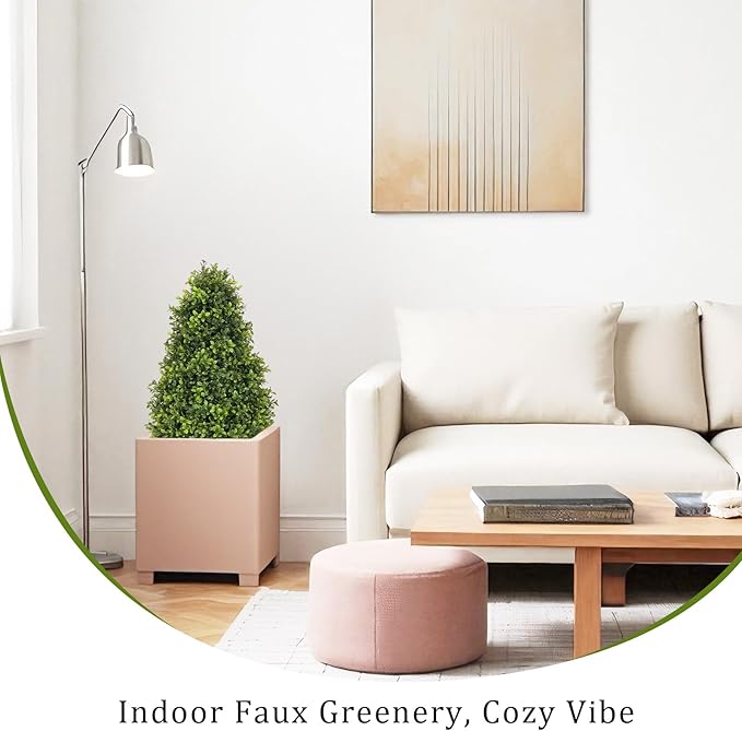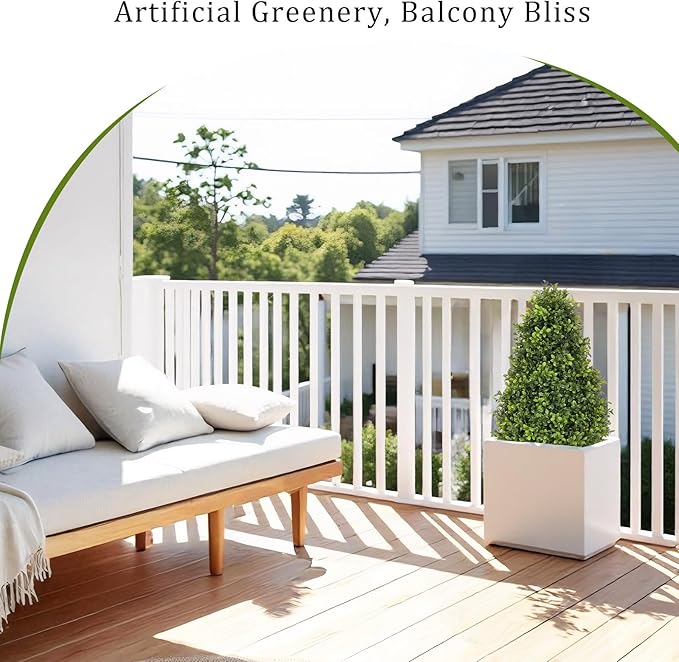 - Lifelike & Elegant Design - Realistic faux plants outdoor with lifelike boxwood foliage, multi-textured leaves, and a natural-looking faux bark trunk. The rich green tones of this artificial topiary for outdoors and indoors bring charm and elegance to any setting