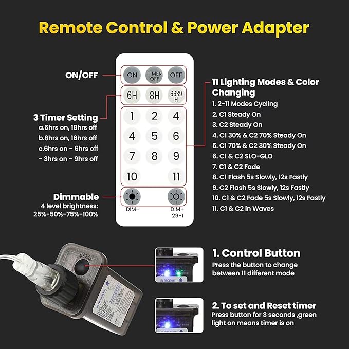 - 8 Dimmable Modes: Fairy string lights function button has 8 lighting effects, choose from a variety of stunning lighting effects to suit your mood and occasion, including steady on, slow fade, in waves, flash and more.