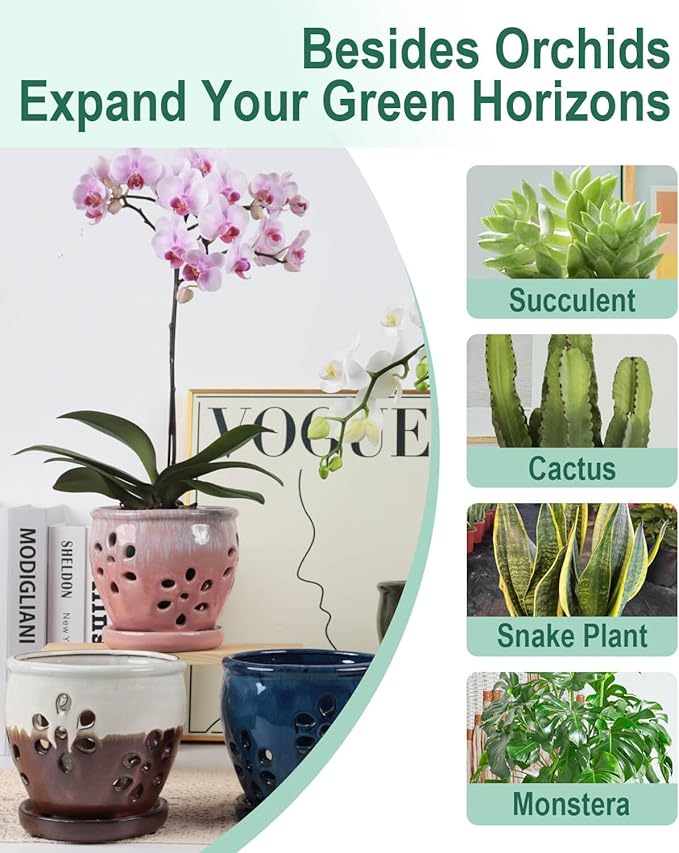 - 【 Perfect Air Flow and Drainage 】 The ceramic orchid pots side body have specially designed multiple holes for promotes air circulation and it has drainage hole in the bottom help for better drain and benefit for root grow healthy. Orchid pot with attached saucer could collect excess water keep your planting place cleaning