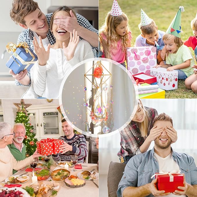 Healing Crystal Suncatchers Hanging Wind Chime Style Garden Suncatcher Rainbow Maker Gold Plated Sun Catcher Decor for Home Indoor Outdoor Gift (RED)