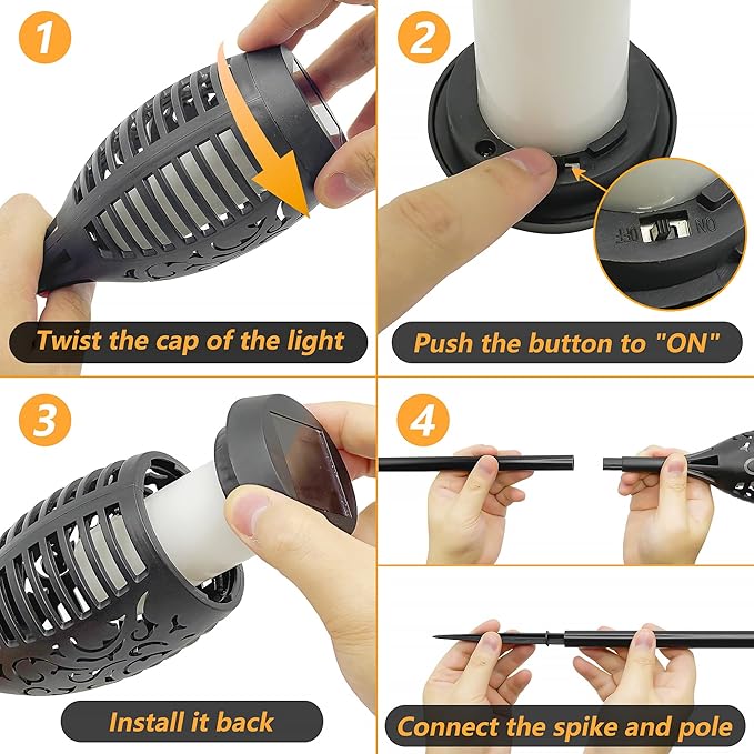 - 🔥【Easy To Install】Solar flame lights outdoor needn't wires and tools, small 20.5 in tall garden lights solar powered are easy to install. Just connect the parts and stake into the ground where there is direct sunshine.