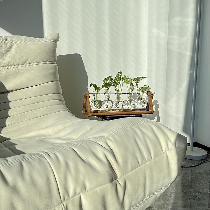 - [Minimalist & Practical Design] - Classic wooden stand and 5 mini bulb-shaped glass vases for stylish display of flowers, plant cuttings and aquatic plants. Suitable for all kinds of green plants and herbs.
