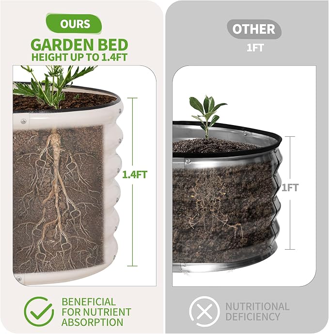 - 【Upgrade Quality & Structure 】The raised garden bed is made of thick galvanized metal with a surface spray coating, which is rust proof and anti-corrosion. Can be used for a long time. The oval design ensures uniform surface force and prevents deformation. More durable than other raised planter box, becoming a good helper for your garden.