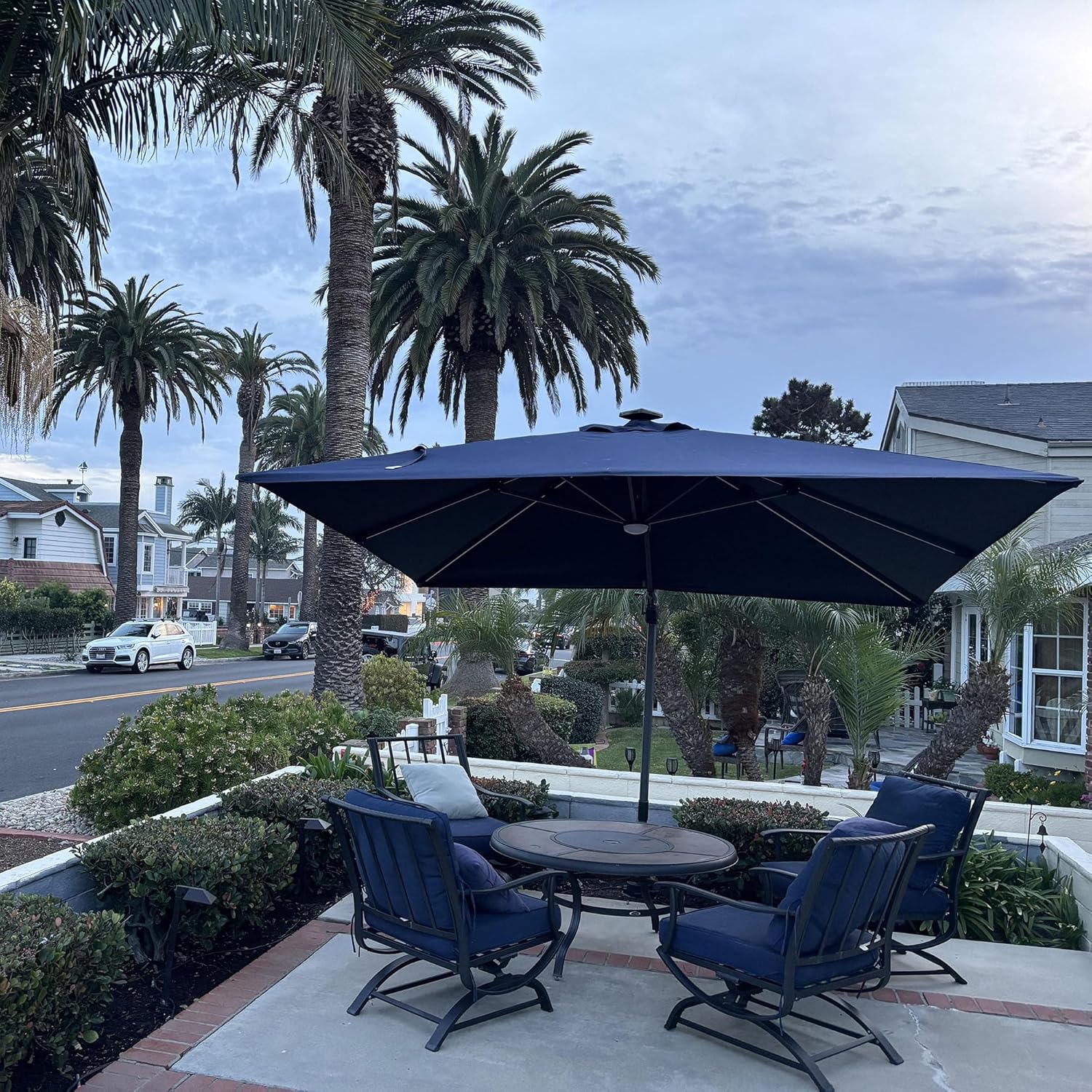 PURPLE LEAF 10 Feet Patio Umbrella Solar Powered LED Square Outdoor Cantilever Umbrella with LED Lights Aluminum Offset Umbrella with 360-degree Rotation for Garden Deck Pool Patio Navy Blue