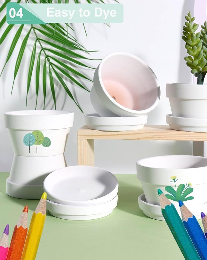 • Saucer&Drainage: Package included 6pcs terra cotta saucer to prevent dust and water from falling out of the drain, to keep the interior clean and to increase the beauty of the room the drainage outlet can prevent water accumulation and extend the life of the plant.