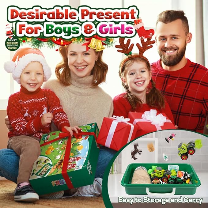 FRUSE Play Sand Farm Toys,Sensory Bins for Toddlers with 2.2lbs Sensory Play Sand,Farm Figures & Tractor Playset,Sandbox Toys for Kids 3 4 5 6 7
