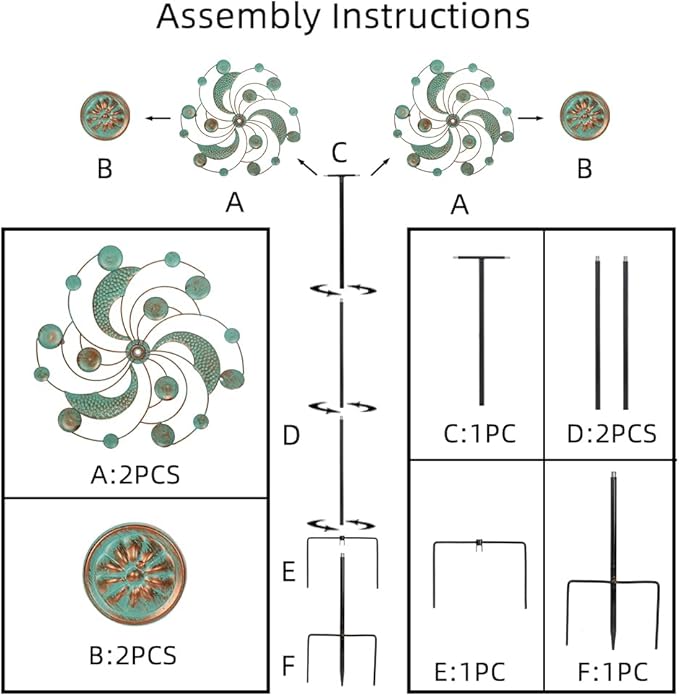 - Easy To Assembly: Our yard spinners come with simple instructions, making assembly a breeze. No special tools required – set up your wind spinner for yard and garden quickly and effortlessly.