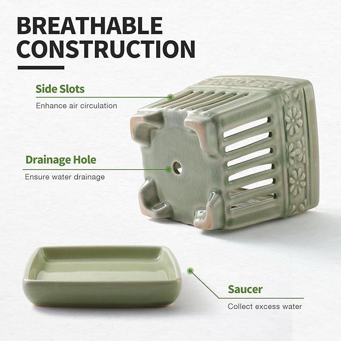 • 【Elegant Design】Unique carved patterns make this orchid pot stand out. Fully glazed with improved air circulation through aeration holes on the front and back.