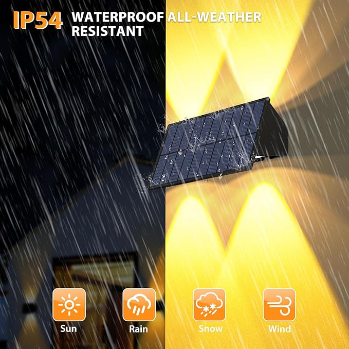 - [IP54 Waterproof &Widely Application] :No need to worry about the weather. The structure of the light is designed to be waterproof.Designed with weather-resistant materials and a waterproof rating, this fence solar light can withstand a variety of outdoor conditions, such as rain, snow, and extreme temperatures. This is a solar light outdoor waterproof, suitable for wooden fences, decks, porches, patios, garage doors, gardens, villas, steps, fences, passages, stairs, etc.