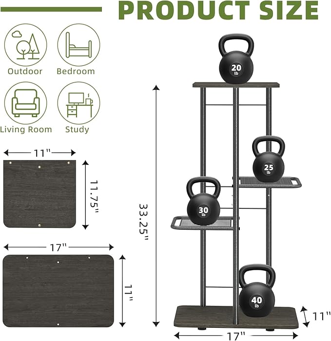 • 2.[Sturdy and Durable】This plant stand adopts a unique 4-tier layered design for even load bearing and not easy to deform, the thickened metal tube can withstand up to 150lbs, and its own feet can protect the floor well.